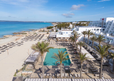 Das renovierte Resort bietet 345 vollständig überarbeitete Zimmer, Suiten und Bungalows. Besonders die geräumigen Suiten mit bis zu 54 Quadratmetern und separatem Wohn- und Schlafbereich setzen neue Maßstäbe für Komfort auf der nur 90 Quadratkilometer großen Pityusen-Insel. Familien profitieren von speziellen Bungalows mit Platz für vier Personen.