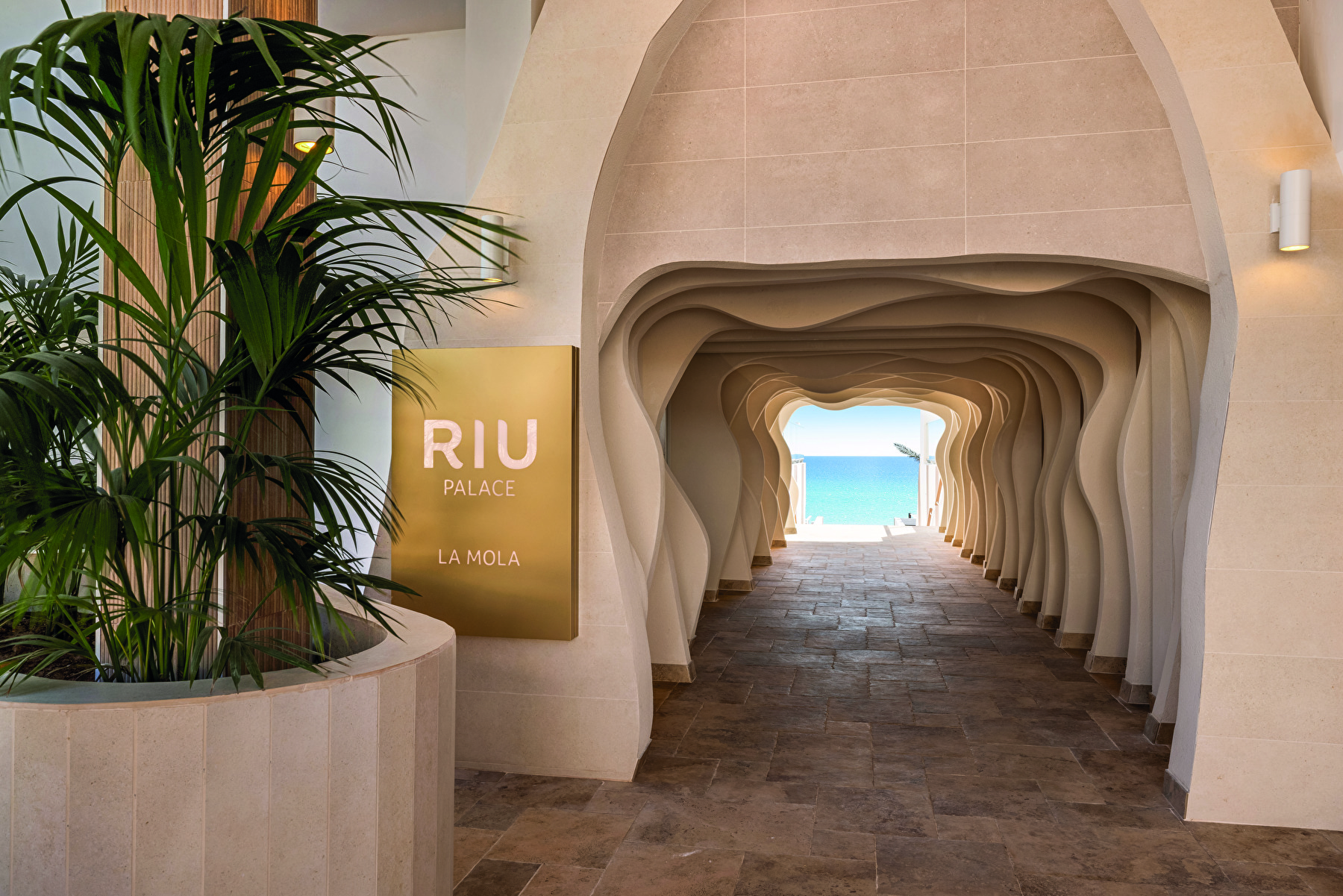 Wie durch eine Welle gelangen Gäste ins Riu Palace La Mola c) RIU Hotels & Resorts